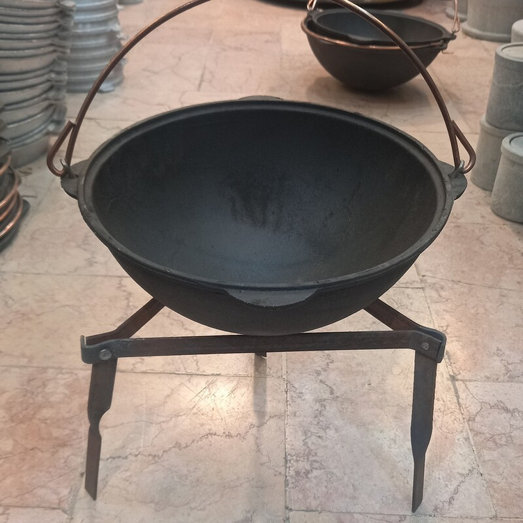 قازن چدن اصلی 8لیتری دسته دار همراه سه پایه تاشو