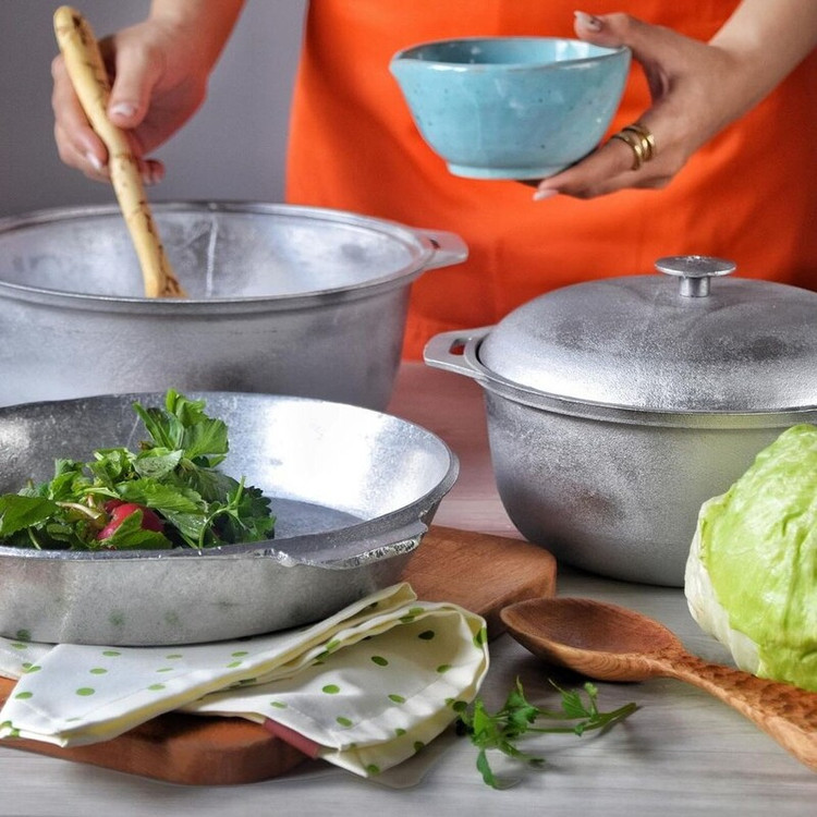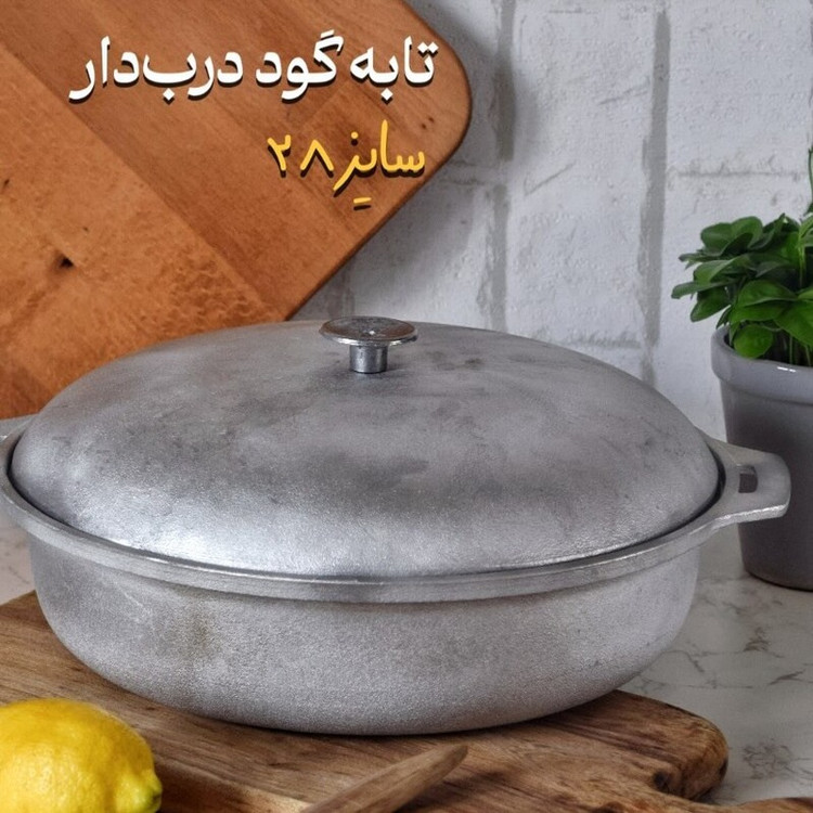 تابه بزرگ چدن روسی دیواره بلند درب دار