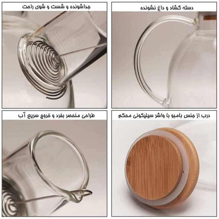 قوری بامبو کد 1000 با یک صافی آهنی که در دهانه قوری قرار میگیرد. و درب چفت قوری می باشد.