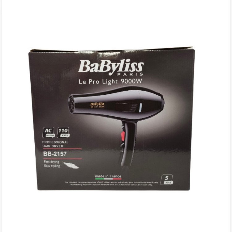 سشوار حرفه ای بابیلیس مدل BB-2157 موتوری پرقدرت از نوع AC دارد که بادی با سرعت 110 کیلومتر در ساعت تولید می کند. که باعث می شود موها تا 20 درصد سریع تر خشک شوند و سرعت حالت دادن به مو هم دو برابر شود. برای متمرکز کردن باد هنگام حالت دادن به موها می توان از سری متمرکز کننده باریک با عرض 6 میلی متر استفاده کرد. این سشوار مجهز به فناوری تولید یون است که باعث میشود موها سریع تر خشک شده و پس از خشک شدن درخشندگی و لطافت بیشتری داشته باشند سرعت باد سشوار در دو حالت کم و زیاد قابل تنظیم است. حرارت سشوار را می توان در سه حالت باد سرد، باد گرم و باد داغ تنظیم کرد. از باد سرد می توان برای تثبیت حالت موها استفاده کرد. روی هم رفته 5 حالت مختلف سرعت و حرارت وجود دارد که با توجه به جنس مو و کاربری مورد نظر، می توان یکی از آن ها را انتخاب کرد. ذر قسمت ورودی هوای سشوار، فیلتر هوای آن قرار دارد که به شکل چرخشی باز می شود و می توان آن را تمیز کرد.