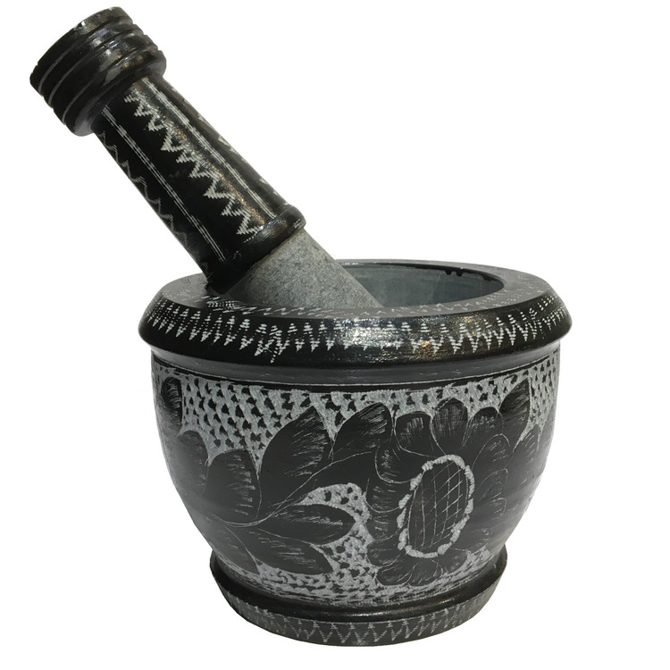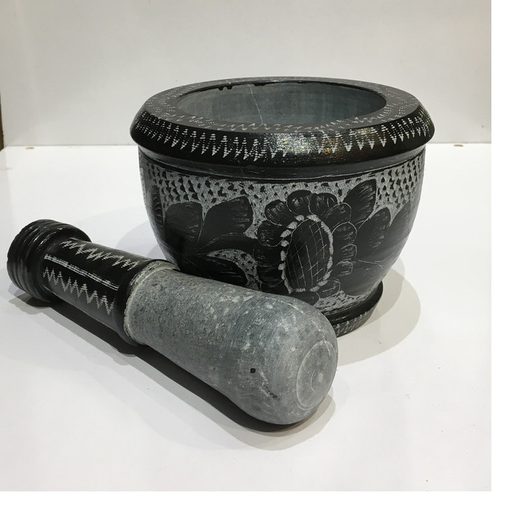 یکی از لوازم آشپزخانه سنگی ساخته شده از سنگ سرپانتین طبیعی است و اجرای هنر زیبای قلم زنی بر روی این محصول به آن جلوه و روح تازه ای داده است.
