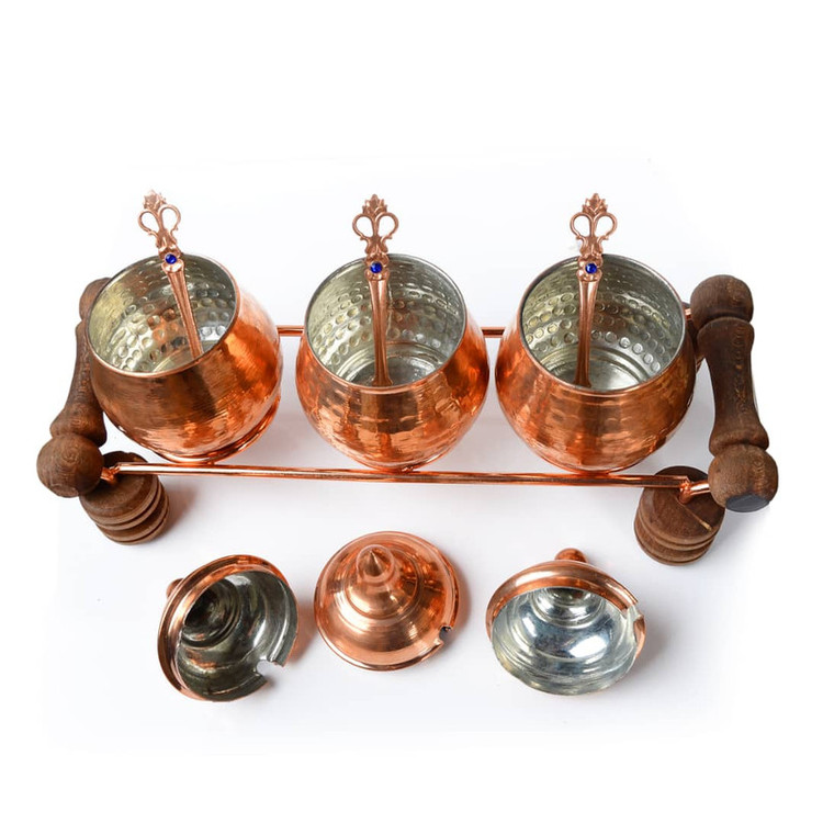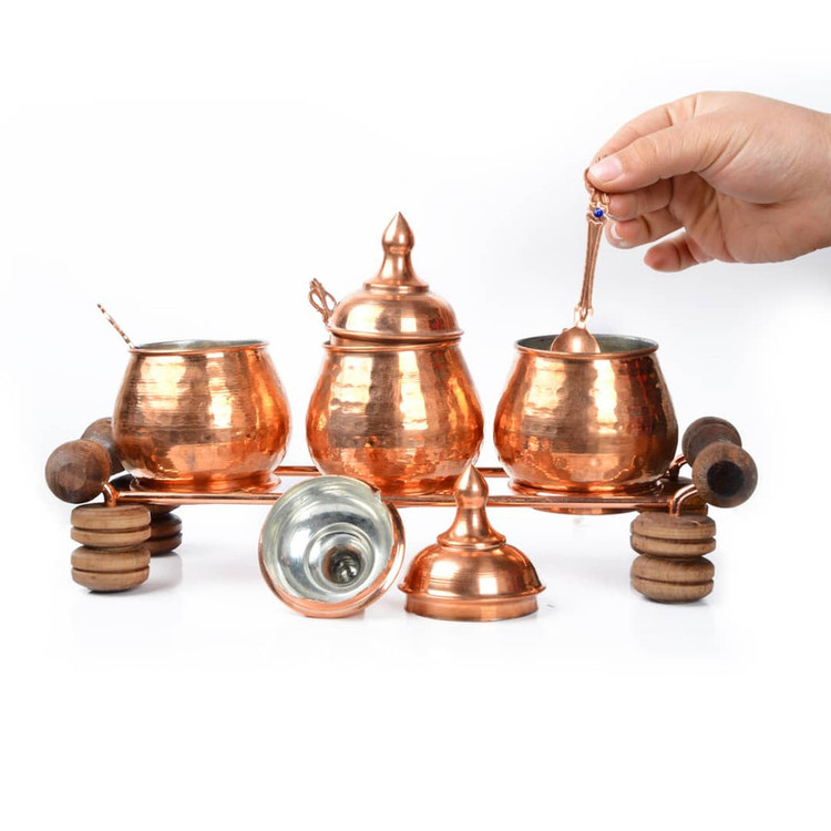 مس از دیرباز به دلیل خواص پزشکی فراوان و زیبایی جایگاه ویژه ای در سفره ها و آشپزخانه های ما ایرانیان داشته است. از این رو با تولید ظروف مسی با مواد اولیه مرغوب گامی به سوی احیا و حفظ این صنعت و فرهنگ دیرینه برداشته است . این ظروف با بدنه چکش کاری و لعابکاری داخلی قلع عرضه میشود و شما عزیزان میتوانید با آسودگی خیال از آنها استفاده نمایید. این محصول به همراه سه عدد قاشق نگین دار از جنس مس عرضه میگردد