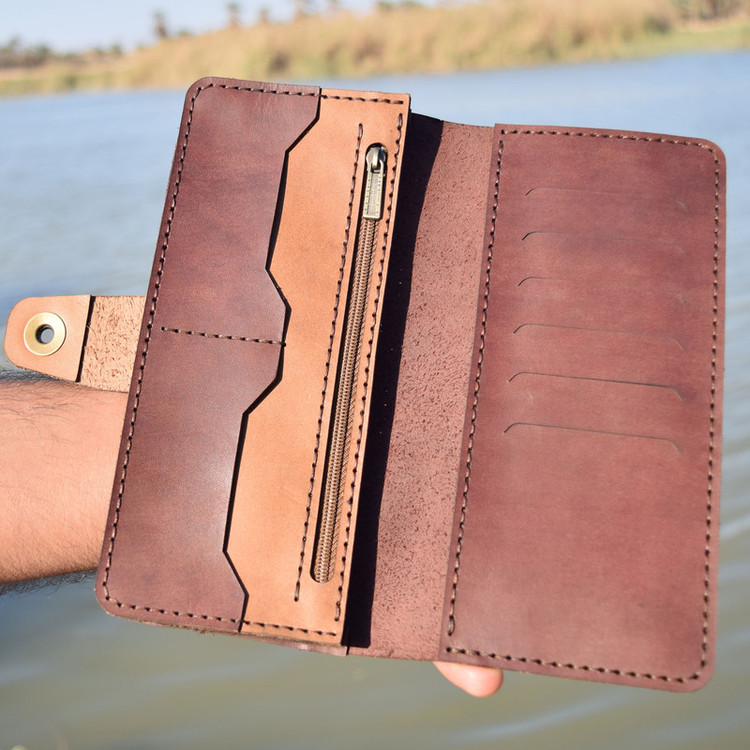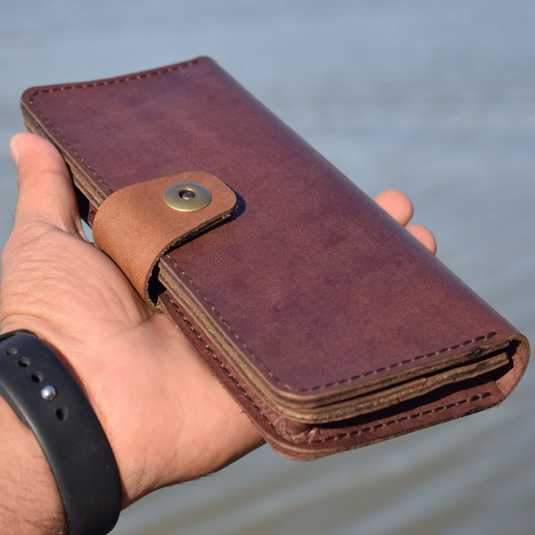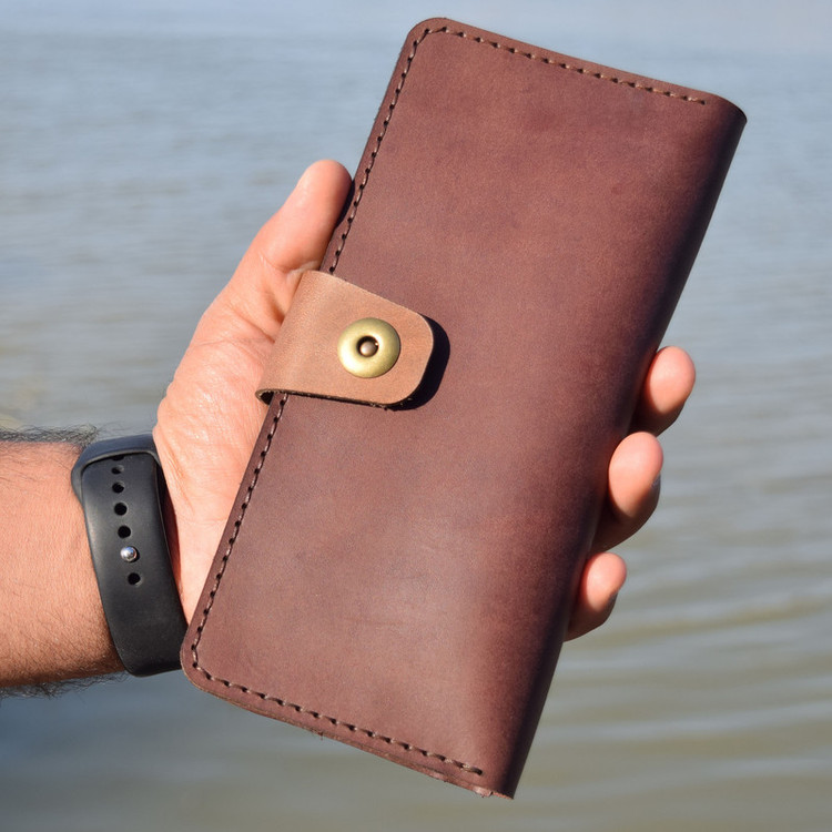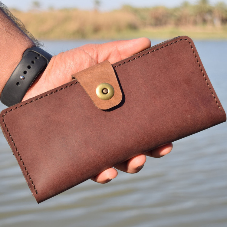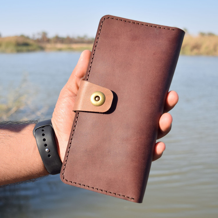 چرم طبیعی هورس وکیوم گاوی دست دوز جای مخصوص گوشی همراه به ابعاد 9x20 دارای قفل اهنربایی