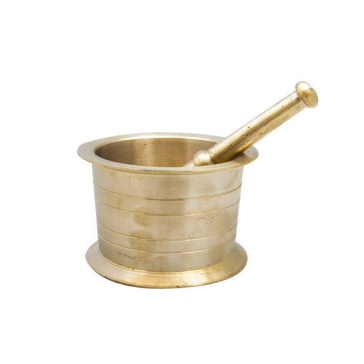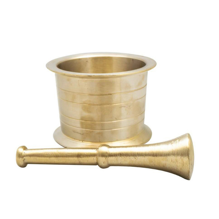 هاون برنجی کیفیت بالا سایز بدنه: 10×14 × 14 سانتی متر سایز دسته: 4×4 × 19 سانتی متر