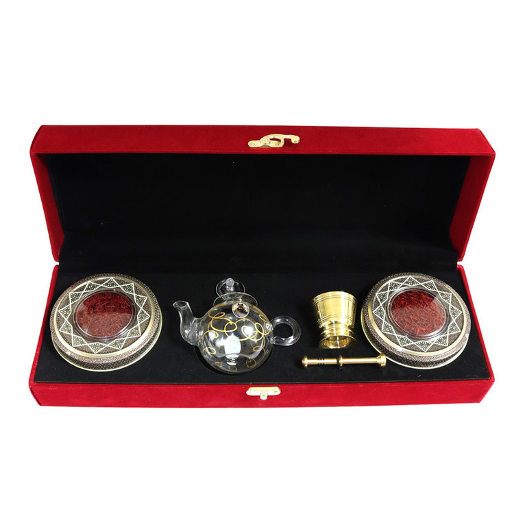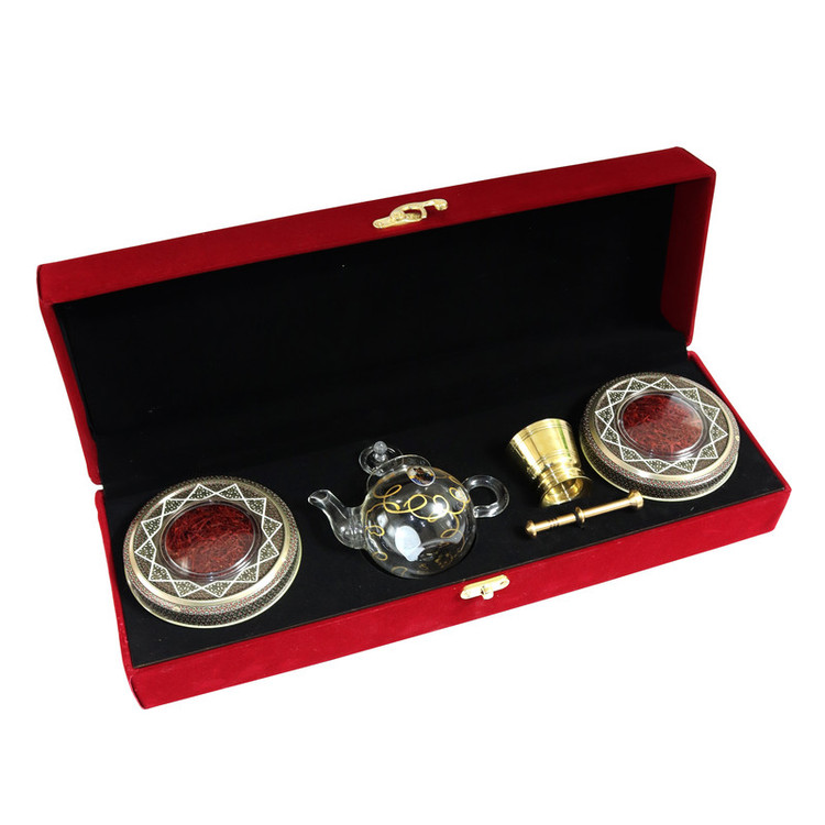 زعفران بینا در این نمونه از پک سازمانی یا پک هدیه زعفران خود، بهمنظور سهولت بیشتر مشتریان عزیز یک هاون برنجی و یک قوری شیشهای کوچک نیز در نظر گرفته است که برای آسیاب کردن زعفران و هل و دم کشیدن آنها پیش از نوشیدن یا برای تهیه غذا عالی هستند. این پکیج کامل حاوی 4 گرم زعفران قائنات با بهترین کیفیت است که در دو ظرف 2 گرمی به صورت جداگانه در ظروف خاتم بستهبندی شدهاند.