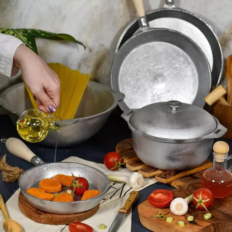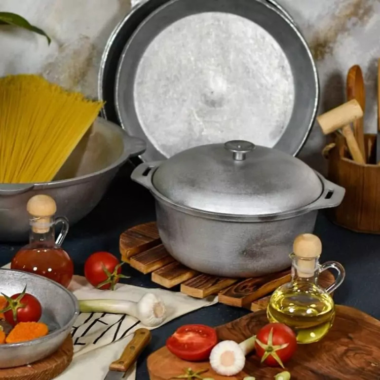 قابلمه چدن روسی کوچک (آلومینیوم خشکه) ۲نفره پلویی و خورشتی تا ۴نفر طبخ غذاو سبزیجات مناسب جهت طبیعت و منزل