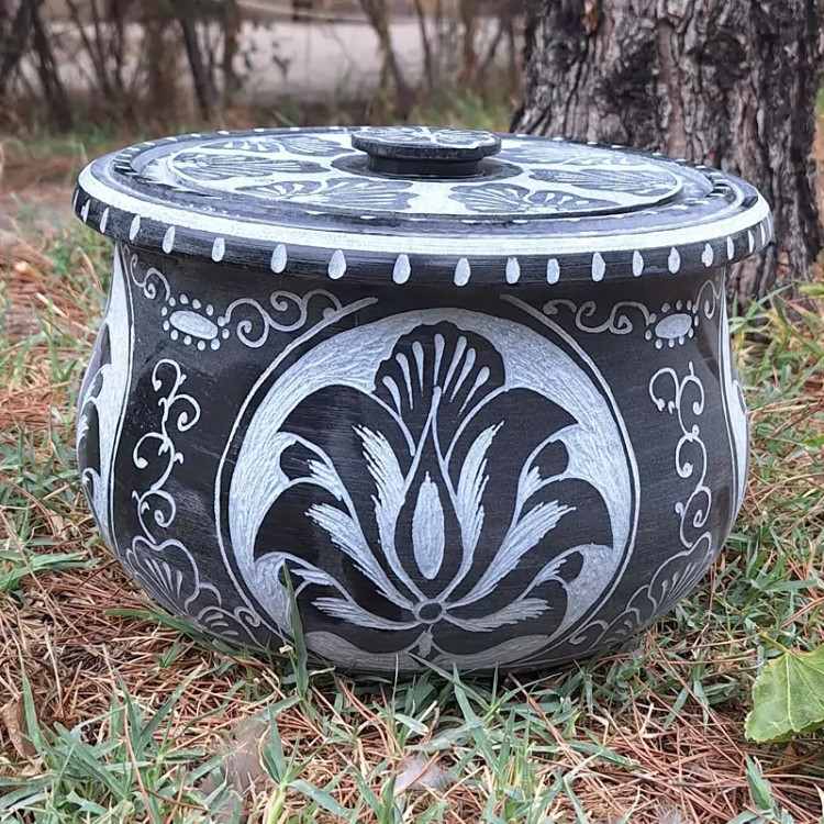 دیگ سنگی 8نفره قلم کاری
