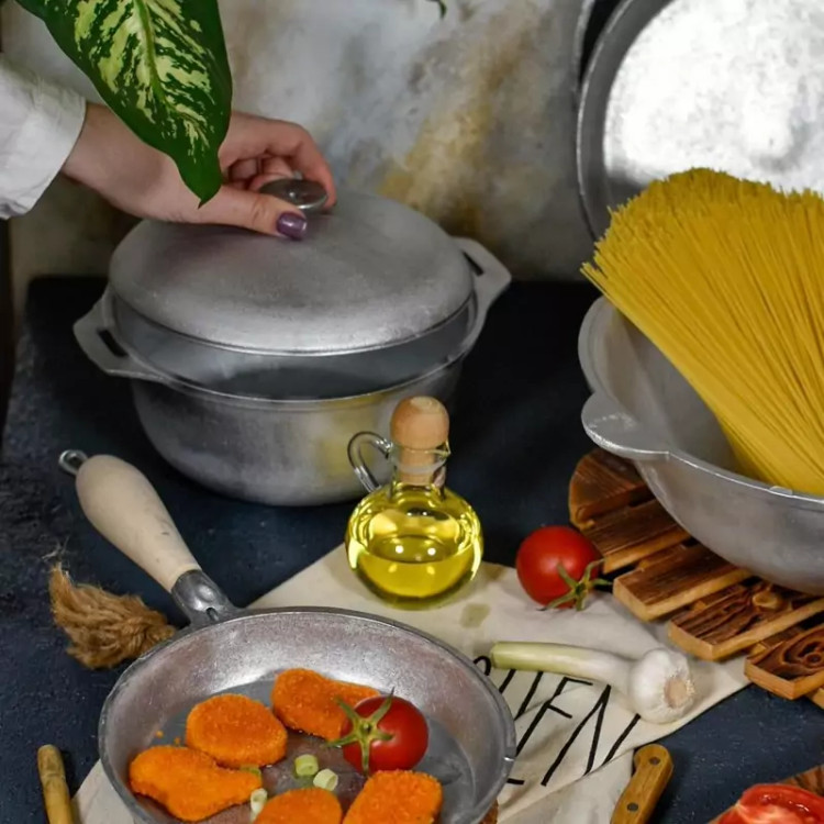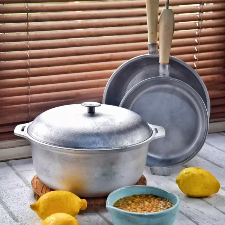 قابلمه چدن روسی بسیار بزرگ ۱۰ الی ۱۲نفره چدن روسی آلومینیومی بسیار بزرگ و بزرگترین سایز قابلمه های چدن روسی قطر دهانه ۳۳سانتی متر و ارتفاع ۱۸سانتی متر