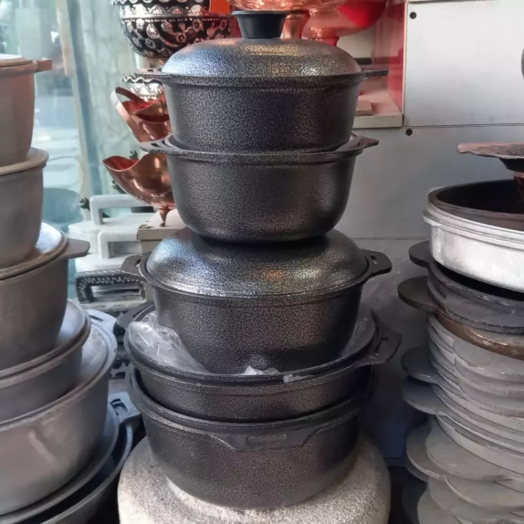 قابلمه چدن روسی بزرگ ۸نفره آلومینیوم خشکه بدنه گرانیت شده عالی داخل بدون روکش