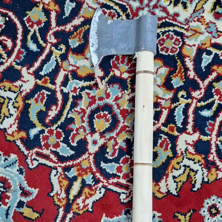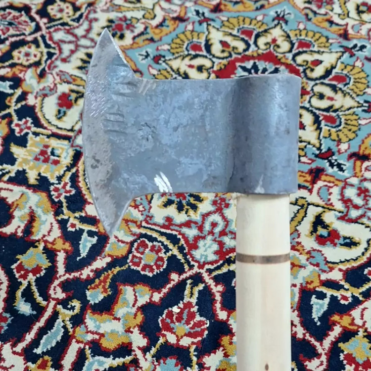 تبر تیغه فولادی فنر آهنگری دسته چوبی