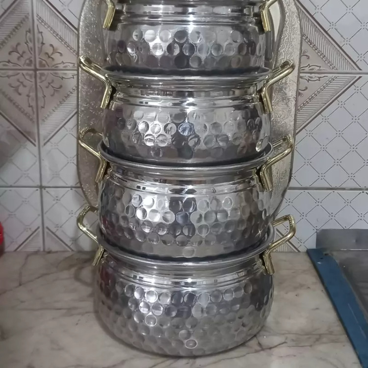 سرویس 8پارچه قابلمه چکشی دسته دار و عالی در 4سایز به قطر های 14،16،18،20 سانتی متر