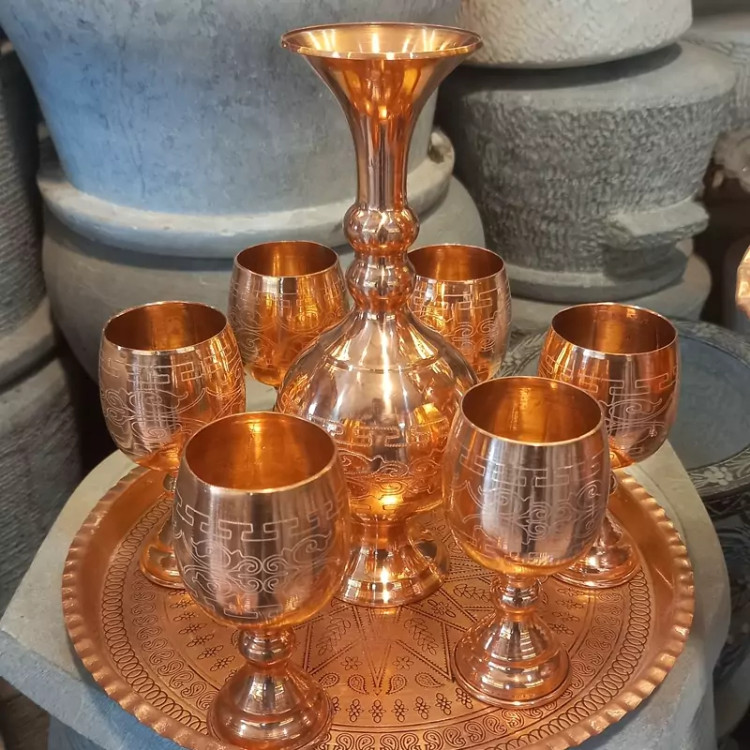 ست 8تیکه جام و تنگ و سینی مسی حکاکی زیبا