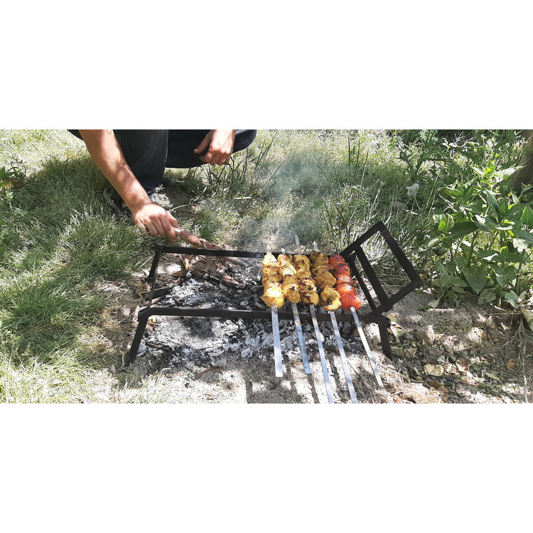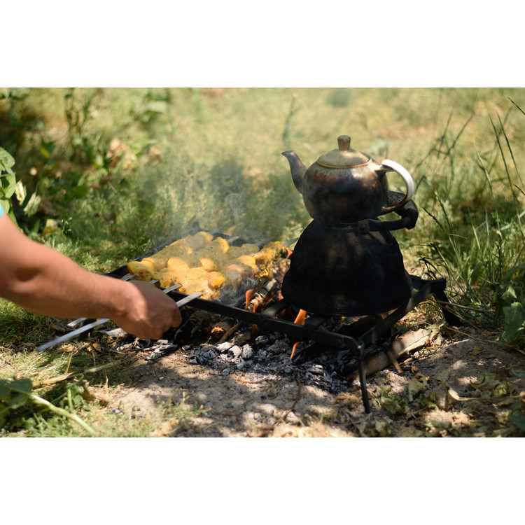 اگر علاقمند به طبیعت گردی و مسافرت هستید، با همراه داشتن منقل سفری تاشو مدل الوند میتوانید لذت سفر خود را افزایش دهید. بعد از استقبال خوب شما از منقل سفری تفتان این بار منقل سفری الوند از همان خانواده را به شما پیشنهاد میکنیم. این منقل سفری هم پس از استفاده در حالت تاشده فضای بسیار کمی اشغال میکند و همواره میتوان آن را در صندوق عقب یا زیر صندلی خودرو به همراه داشت. با روشن کردن آتش و قرار دادن آن روی آتش میتوان کتری، قابلمه و ماهیتابه را روی آن گذاشت و همزمان از باقی فضا برای گذاشتن سیخ و کباب کردن استفاده کرد و در صورتی که به فضای بیشتری برای کباب کردن نیاز بود به راحتی میتوان با بالا آوردن نگهدارندهی ظروف فضای بیشتری برای سیخها فراهم کرد. سطح زیادتر قابل استفاده نسبت به نمونههای دیگر امکان استفاده همزمان از چند ظرف روی آن را مهیا میکند. منقل سفری تاشو مدل الوند بین کتری و ظروف شما با آتش فاصله ایجاد میکند. فاصله ایجاد شده جریان هوا به مرکز آتش و ذغال را تسهیل میکند و ضمن کاهش دود آن، اضافه کردن ذغال، هیزم و چوب را به آن راحتتر میکند. منقل سفری روی سطوح ناهموار به صورت مستحکم و پایداری قرار میگیرد و با خیال راحت میتوانید ظروف خود را روی آن قرار دهید و هیچ گونه نگرانی از بابت سر خوردن و افتادن آنها نداشته باشید. فلز استفاده شده در این منقل سفری ضخامت و استحکام بالایی دارد. به همین دلیل نیروهای زیاد و وزنههای سنگین را به راحتی تحمل میکند و با استفاده مکرر روی آتش، هیچ آسیبی به آن وارد نمیشود. شکل مسطح و اندازه منقل سفری الوند در حالت جمع شده و کارایی آن در کمپینگ و سفر، آن را به ابزاری کاربردی جهت همراهی شما در سفر، پیکنیک و گردش تبدیل کرده است که به کمک آن میتوان در هر مکانی و به راحتی از آشپزی در طبیعت لذت ببرید. در ضمن لازم نیست نگران حمل و نقل آن و کثیف شدن وسایل کنارش و ماشین بعد از کمپینگ باشید چون کیف مقاوم همراه این محصول، کاملا آن را میپوشاند و تا استفادهی بعدی میتوانید آن را در هر جایی که خواستید قرار دهید بدون این که دوده و کثیفی باقیمانده روی آن جایی را کثیف کند.