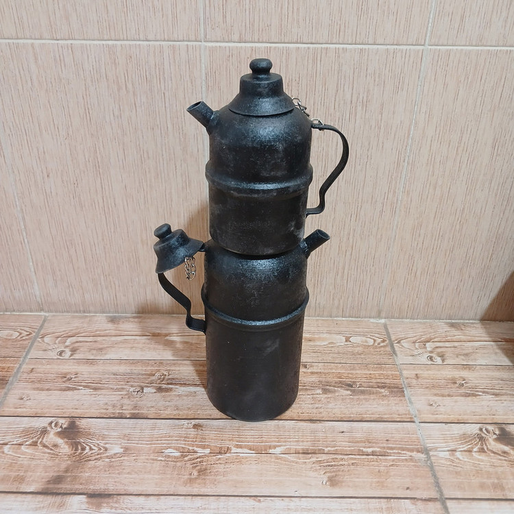 به این نوع کتری و قوری برای تهیه چای آتشی شامورتی یا گداجوش گفته میشود که از ظروف لازم هنگام سفر یا طبیعت گردی میباشد . جنس آلومینیوم آن از نوع روحی و دارای درب میباشد که طراحی آن به گونه ای است که میتوان قوری را روی کتری قرار داد تا از حرارت مستقیم در امان باشد و چای خراب نشود.