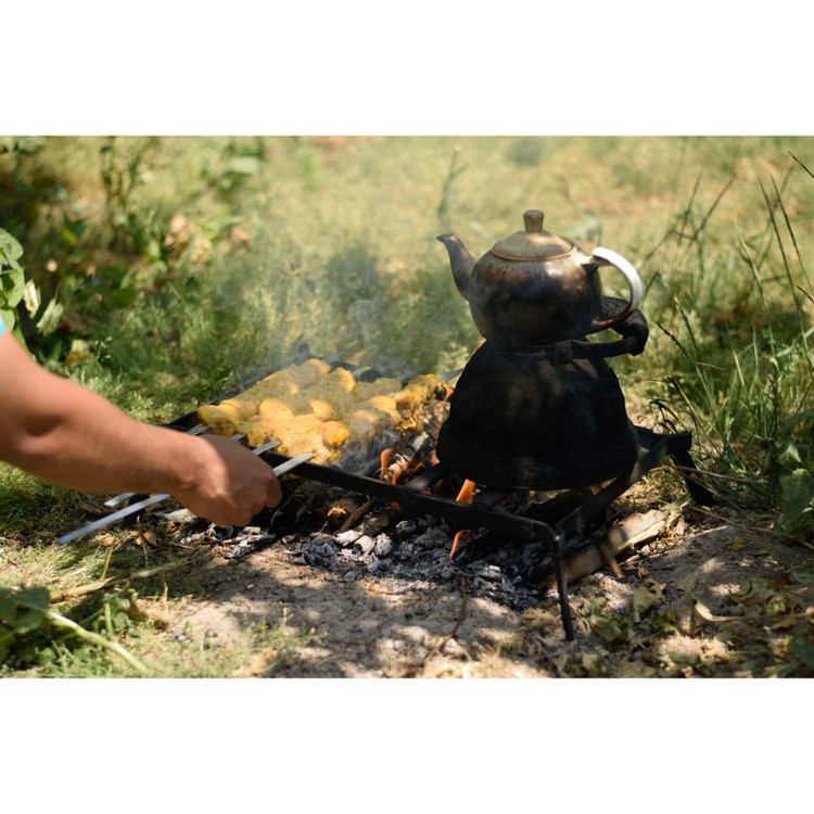 اگر علاقمند به طبیعت گردی و مسافرت هستید، با همراه داشتن منقل سفری تاشو مدل سهند میتوانید لذت سفر خود را افزایش دهید. بعد از استقبال خوب شما از منقل سفری تفتان این بار منقل سفری الوند از همان خانواده را به شما پیشنهاد میکنیم. این منقل سفری هم پس از استفاده در حالت تاشده فضای بسیار کمی اشغال میکند و همواره میتوان آن را در صندوق عقب یا زیر صندلی خودرو به همراه داشت. با روشن کردن آتش و قرار دادن آن روی آتش میتوان کتری، قابلمه و ماهیتابه را روی آن گذاشت و همزمان از باقی فضا برای گذاشتن سیخ و کباب کردن استفاده کرد و در صورتی که به فضای بیشتری برای کباب کردن نیاز بود به راحتی میتوان با بالا آوردن نگهدارندهی ظروف فضای بیشتری برای سیخها فراهم کرد. سطح زیادتر قابل استفاده نسبت به نمونههای دیگر امکان استفاده همزمان از چند ظرف روی آن را مهیا میکند. منقل سفری تاشو مدل الوند بین کتری و ظروف شما با آتش فاصله ایجاد میکند. فاصله ایجاد شده جریان هوا به مرکز آتش و ذغال را تسهیل میکند و ضمن کاهش دود آن، اضافه کردن ذغال، هیزم و چوب را به آن راحتتر میکند. منقل سفری روی سطوح ناهموار به صورت مستحکم و پایداری قرار میگیرد و با خیال راحت میتوانید ظروف خود را روی آن قرار دهید و هیچ گونه نگرانی از بابت سر خوردن و افتادن آنها نداشته باشید. به همین دلیل نیروهای زیاد و وزنههای سنگین را به راحتی تحمل میکند و با استفاده مکرر روی آتش، هیچ آسیبی به آن وارد نمیشود. شکل مسطح و اندازه منقل سفری الوند در حالت جمع شده و کارایی آن در کمپینگ و سفر، آن را به ابزاری کاربردی جهت همراهی شما در سفر، پیکنیک و گردش تبدیل کرده است که به کمک آن میتوان در هر مکانی و به راحتی از آشپزی در طبیعت لذت ببرید